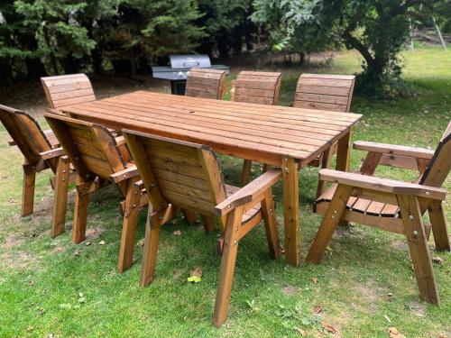 这家度假屋配有2间卧室、起居室、带冰箱和咖啡机的设施齐全的厨房以及1间带淋浴设施和免费洗浴用品的浴室。这家度假屋还配备平板电视以及1间带吹风机的浴室。
