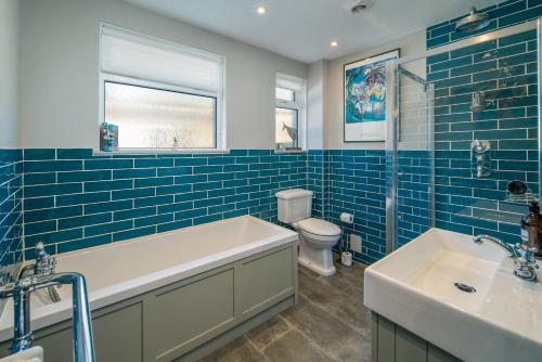 这家度假屋配备4间卧室、带冰箱和洗碗机的厨房以及2间带浴缸、吹风机和洗衣机的浴室。这家度假屋也为客人提供2间浴室。