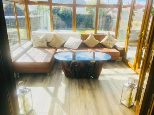 这家别墅配有4间卧室、起居室、带冰箱和咖啡机的设施齐全的厨房以及2间带淋浴设施和吹风机的浴室。这家别墅还提供平板电视、休息区、洗衣机以及2间带浴缸的浴室。