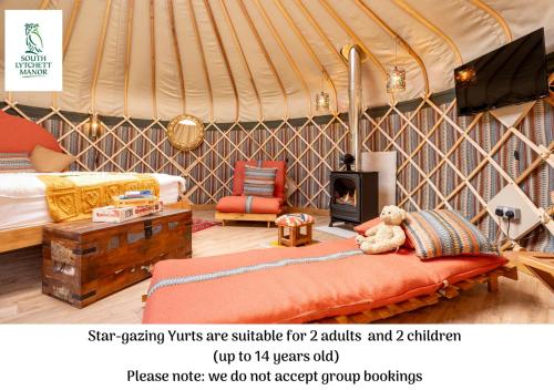 Glamping at South Lytchett Manor坐落于浦耳,配备休息区和电视,距离普尔港有不到6.8公里,距离科夫堡有16公里。住宿配备免费WiFi,内部提供私人停车位。