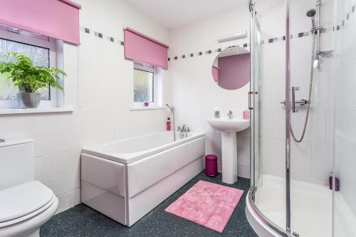 这家度假屋配有DVD播放机,提供带冰箱、洗碗机和烤箱的厨房、带休息区和用餐区的起居室、3间卧室以及1间带淋浴设施和浴缸的浴室。这家度假屋还提供平板电视以及1间带吹风机的浴室。