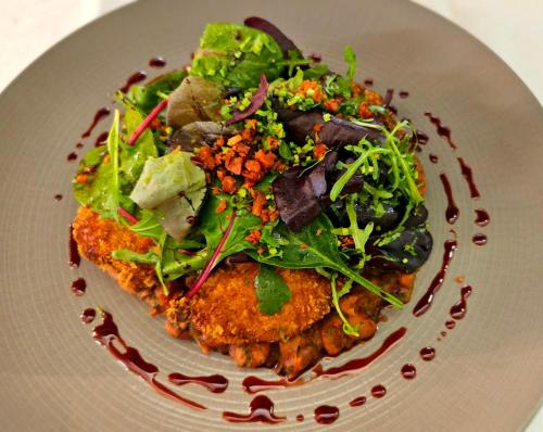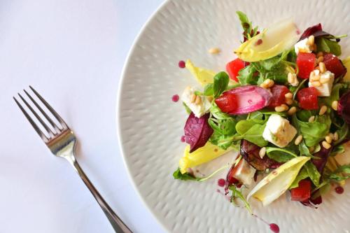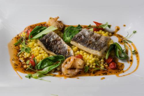 餐厅设有手绘天花板,供应精致美食。点菜菜单随季节调整变化,菜肴均采用最新鲜的当地优质农产品。酒店的围墙菜园已拥有400年历史,许多菜肴均采用该菜园的食材烹制而成。