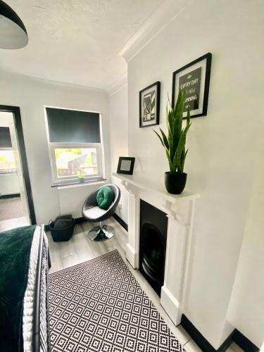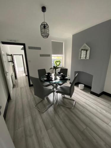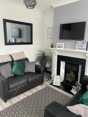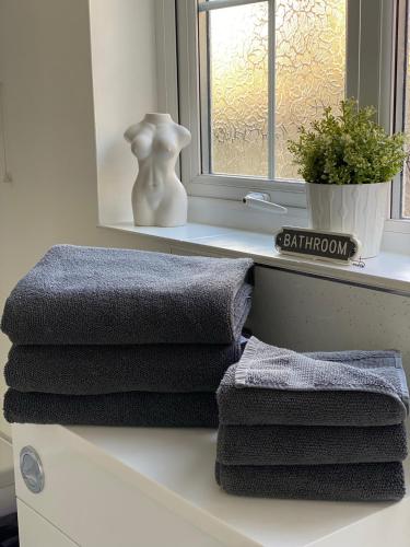 这家度假屋配有2间卧室、起居室、带冰箱和电热水壶的设施齐全的厨房以及1间带淋浴设施和吹风机的浴室。这家度假屋还提供平板电视、休息区以及1间带浴缸的浴室。