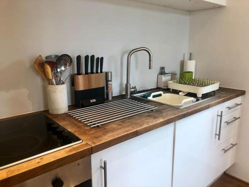 这家1卧室度假屋提供起居室、带有线频道的平板电视、带冰箱和烤箱的设施齐全的厨房以及1间带吹风机的浴室。这家度假屋也配有1间浴室。
