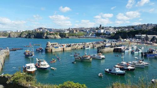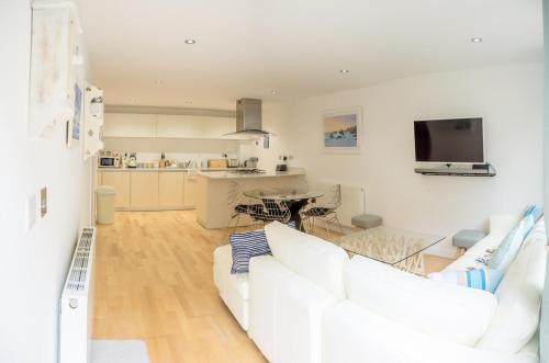 Headland Hideaway, Fistral Beach Newquay, Cornwall配备免费WiFi和露台,距离港口海滩(The Harbour Beach)有不到3分钟步行路程,距离纽基火车站有不到1.9公里。这家公寓距离特来里斯克花园有30公里,距离伊甸园工程有33公里。