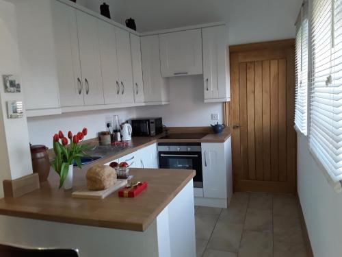 这家度假屋提供露台,享有花园景,配有1间卧室、起居室、平板电视、带冰箱和洗碗机的设施齐全的厨房以及1间带淋浴设施的浴室。这家度假屋还提供休息区、洗衣机以及1间带吹风机的浴室。