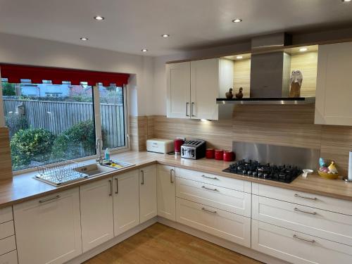'Sounion' - Fabulous, spacious modern house with large private garden in Leafy Lytham位于莱瑟姆-圣安妮,提供花园和露台,距离圣安妮斯海滩(St Annes Beach)有14分钟步行路程,距离黑池游乐海滩主题公园有9公里,距离珊瑚岛有10公里。这家度假屋提供免费私人停车位、24小时前台和免费WiFi。