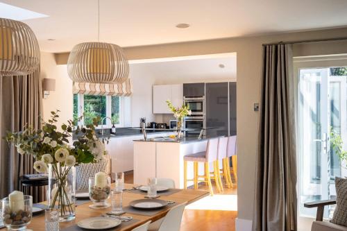 这家4卧室度假屋配有起居室、电视、带洗碗机和烤箱的设施齐全的厨房以及4间带吹风机的浴室。这家度假屋也拥有4间浴室。