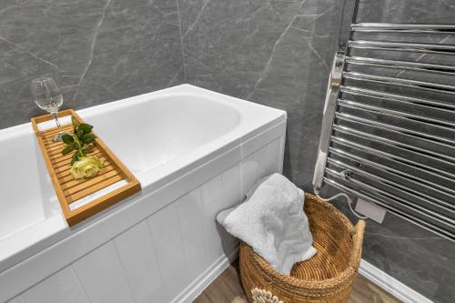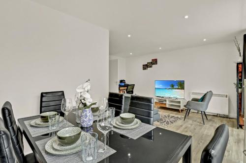 这家公寓配备游戏机,提供带冰箱、洗碗机和烤箱的厨房、带休息区和用餐区的起居室、1间卧室以及1间带坐浴盆和淋浴设施的浴室。1间浴室配有热水浴池,也为客人提供免费洗浴用品,提供毛巾和床上用品。