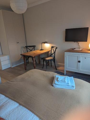 所有客房均配有带卫星频道的平板电视、电热水壶、淋浴设施、吹风机和书桌。这家旅馆的客房提供床上用品和毛巾。