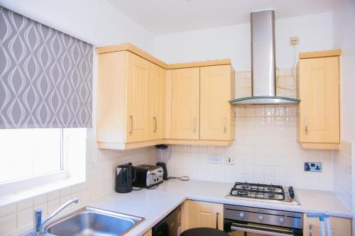 这家公寓配有2间独立卧室、起居室、带冰箱和烤箱的设施齐全的小厨房以及1间浴室。这家公寓也为客人提供休息区和1间浴室。