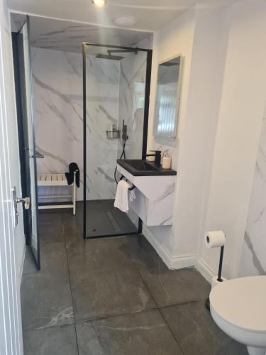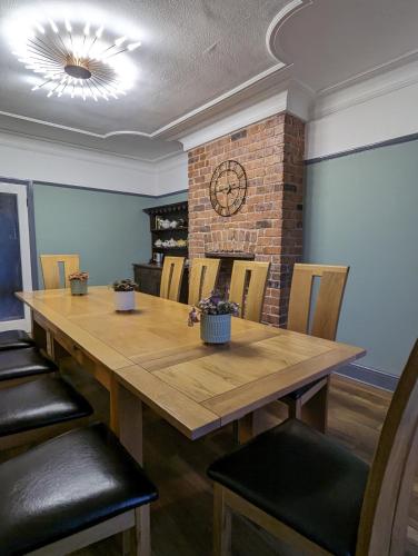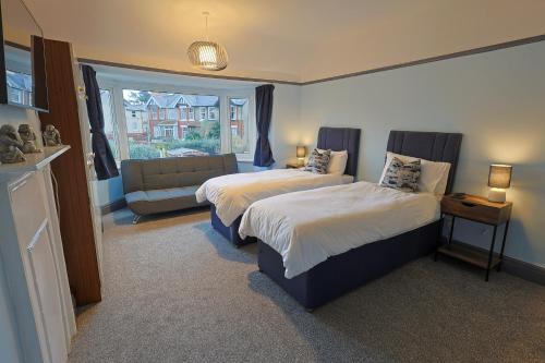 这家度假屋提供庭院,享有花园景,拥有5间卧室、起居室、平板电视、带冰箱和洗碗机的设施齐全的厨房以及3间带淋浴设施的浴室。3间浴室配有浴缸,也配备免费洗浴用品,提供毛巾和床上用品。