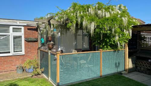 Shoreline hideaway - next to the beach坐落于小荷兰,距离克拉克顿海滩(Clacton Beach)仅有8分钟步行路程,提供海滨住宿、花园和免费WiFi。入住这家度假屋的客人可以使用庭院。