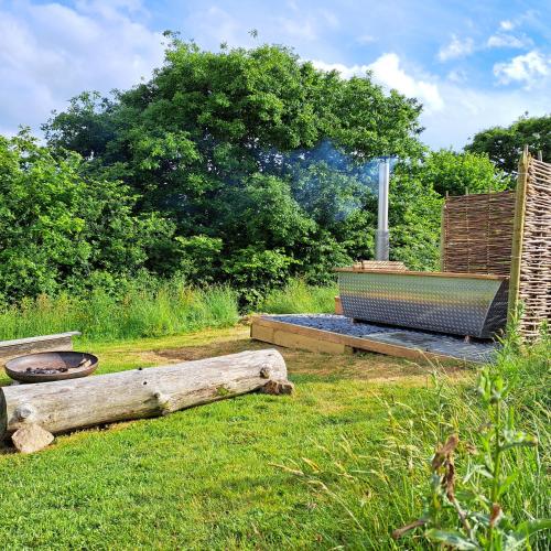 Brackenhill Glamping - Safari Tent with Hot Tub位于艾维布里奇,提供露台,距离牛顿阿伯特赛马场有35公里,距离托恩城堡有15公里,距离马什米尔斯有19公里。这家自助式豪华帐篷配有花园、烧烤设施、免费WiFi和免费私人停车位。