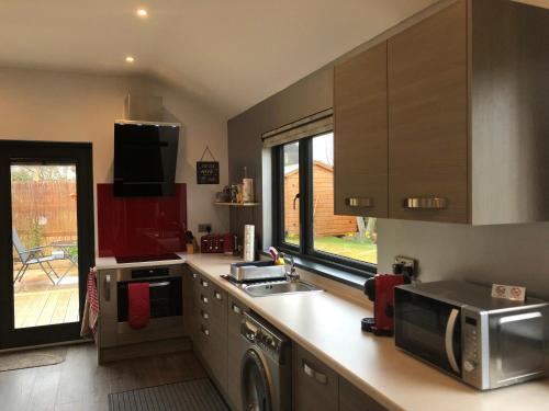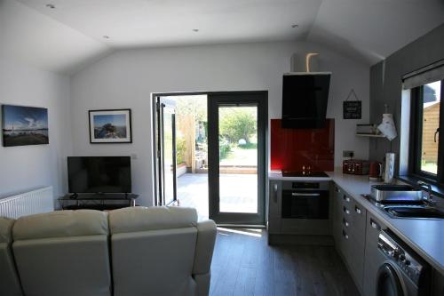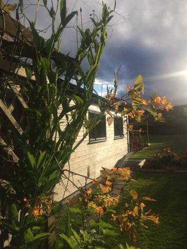 这家小木屋配有1间卧室、1间浴室、床上用品、毛巾、平板电视、用餐区、设施齐全的厨房以及花园景庭院。1间浴室配有淋浴设施和洗衣机,也拥有免费洗浴用品和吹风机。