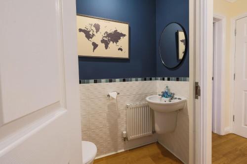 这家度假屋配有3间卧室、2间带吹风机的浴室、起居室以及带冰箱的厨房。这家度假屋也提供2间浴室。