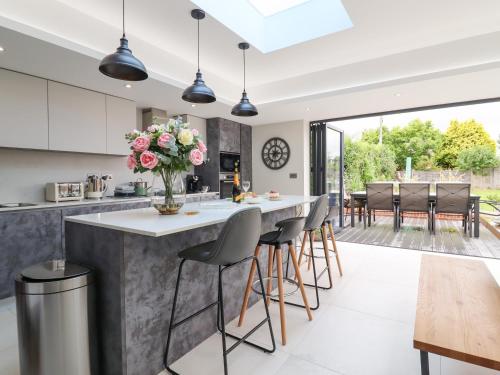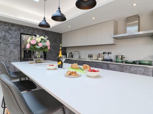 这家度假屋配有4间卧室、带冰箱和洗碗机的厨房、电视、休息区以及3间带淋浴设施的浴室。这家度假屋也拥有3间浴室。