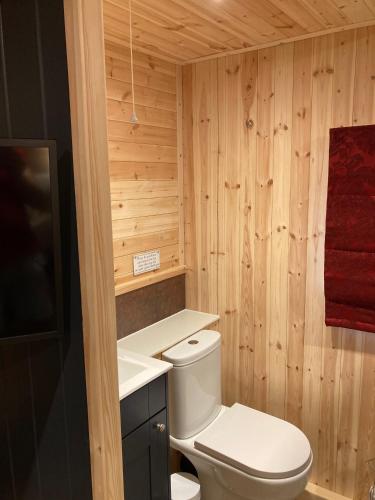 这家小木屋享有河景,为客人提供露台、休息区、平板电视、带冰箱和洗碗机的设施齐全的厨房以及带淋浴设施的私人浴室。住宿还配备烤箱、炉灶、吐司机和电热水壶。