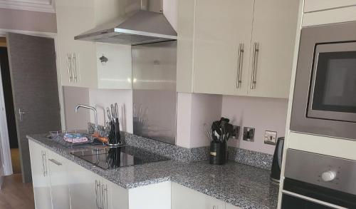 Indulge in the elegance of our open-plan contemporary dining and seating areas, complete with flat-screen TVs. Our fully equipped kitchens boast granite worktops, a fridge/freezer, dishwasher, oven, washer/dryer, and microwave, ensuring a seamless stay. Enjoy complimentary tea and coffee courtesy of a provided kettle.
