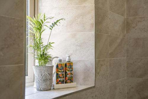 这家度假屋配有2间独立卧室、2间带吹风机的浴室和起居室。这家度假屋也配有2间浴室。
