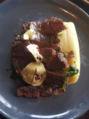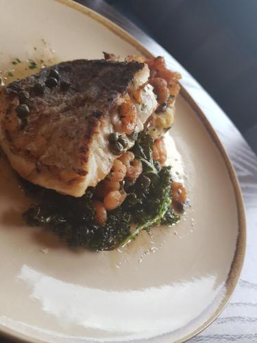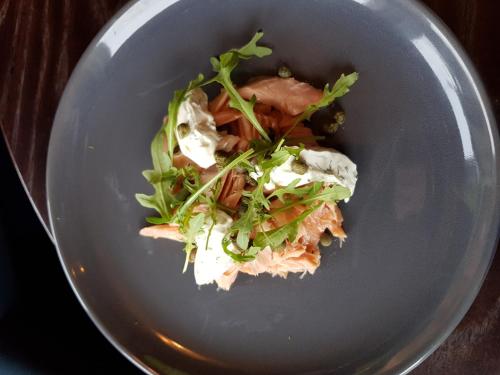 酒店内的酒吧提供开放式壁炉和壮丽景色,供应包括素食在内的新鲜熟食全套菜单。