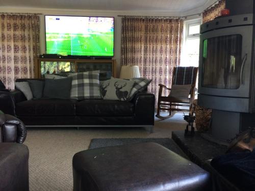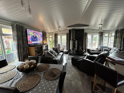 这家度假屋配备蓝光播放机,提供带冰箱、烤箱和微波炉的厨房、带休息区和用餐区的起居室、3间卧室以及2间带淋浴设施和浴缸的浴室。这家度假屋还配备平板电视以及2间带吹风机的浴室。