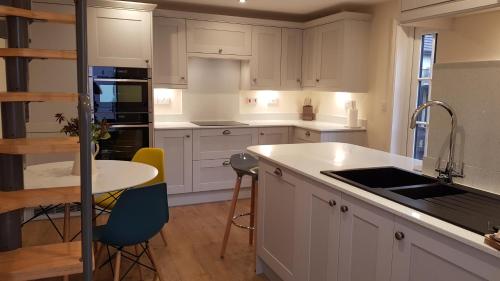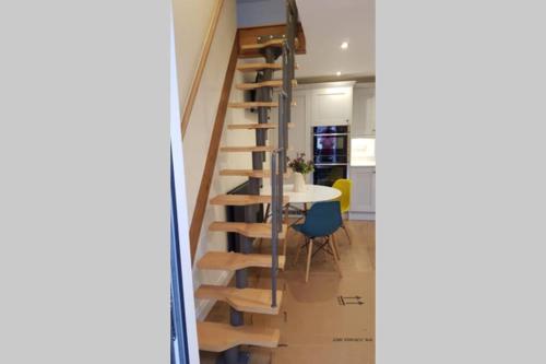 这家度假屋提供露台,享有河景,配有1间卧室、起居室、平板电视、带冰箱和洗碗机的设施齐全的厨房以及1间带淋浴设施的浴室。这家度假屋还配备休息区、洗衣机以及1间带免费洗浴用品的浴室。
