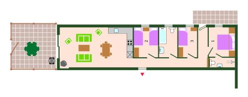 这家度假屋配有3间卧室、起居室、带冰箱和咖啡机的设施齐全的厨房以及2间带浴缸的浴室。这家度假屋也提供2间浴室。