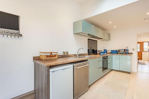 这家度假屋配备1间卧室、带冰箱和洗碗机的厨房、电视、休息区以及1间带淋浴设施的浴室。这家度假屋也为客人提供1间浴室。