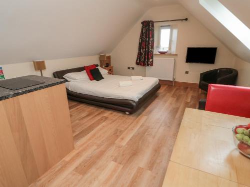 这家度假屋配备1间卧室、带冰箱和炉灶的厨房、电视、休息区以及1间带浴缸或淋浴设施的浴室。这家度假屋也为客人提供1间浴室。