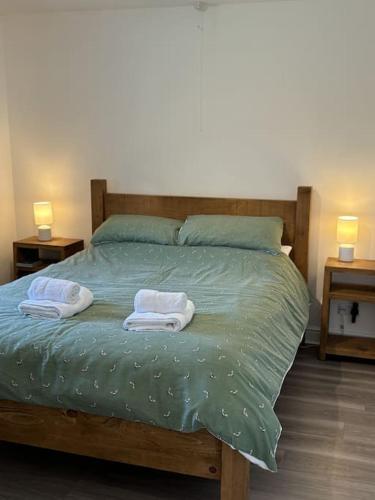 这家2卧室度假屋配有起居室、平板电视、的设施齐全的厨房以及1间带吹风机的浴室。这家度假屋也拥有1间浴室。