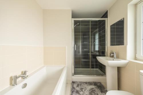 这家度假屋配备游戏机,提供带冰箱、洗碗机和烤箱的厨房、带休息区和用餐区的起居室、4间卧室以及4间带淋浴设施和浴缸的浴室。这家度假屋还配备平板电视以及4间带免费洗浴用品的浴室。