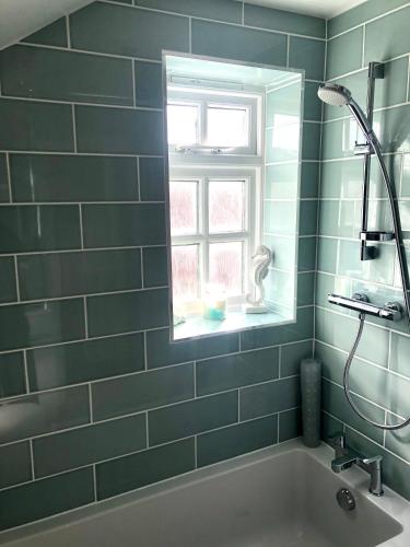 这家度假屋提供2间卧室、带冰箱和洗碗机的厨房以及1间带淋浴设施、吹风机和洗衣机的浴室。这家度假屋还配备平板电视、休息区以及1间带浴缸的浴室。