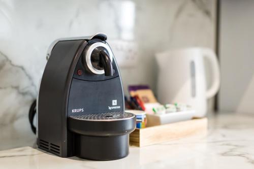 这家公寓配有1间卧室、起居室、带冰箱和咖啡机的设施齐全的厨房以及2间带淋浴设施和免费洗浴用品的浴室。这家公寓也为客人提供休息区和2间浴室。