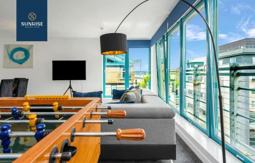 THE PENTHOUSE, Spacious, Stunning Views, Foosball Table, 3 Large Rooms, Central Location, River Front, 1 Min From Tay Bridge, V&A, Train Station, City Centre, Lift Access, Free Parking & WiFi, PRICE MATCH GAURANTEE by SUNRISE SHORT LETS