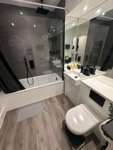 Panoramic Private Room and Bathroom in a Modern Apartment位于克罗伊登,配备带免费WiFi的市景客房,配有花园和露台。住宿可安排私人停车位,需额外收费。