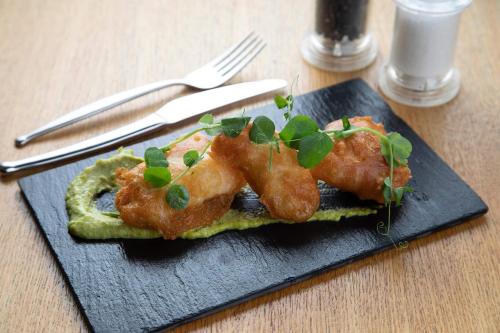 酒店早晨提供全套苏格兰式早餐,可供客人品尝包括果酱在内的部分当地产品。酒吧、餐厅或啤酒花园均于午餐和晚餐时段供应餐点和小吃。