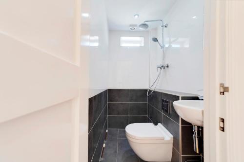 这家度假屋提供1间卧室、带冰箱和洗碗机的厨房以及1间带淋浴设施、吹风机和洗衣机的浴室。这家度假屋也配有1间浴室。