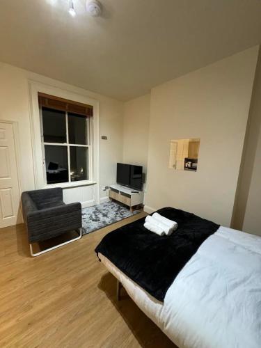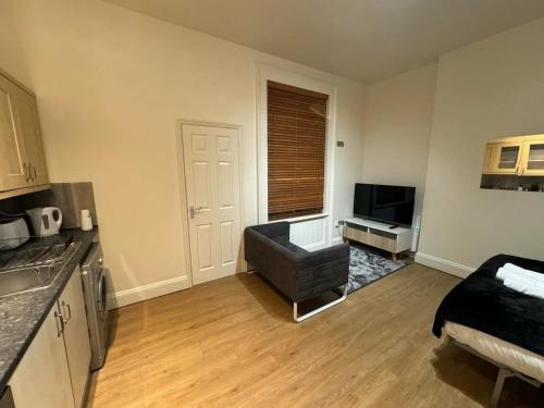 这家公寓配有1间卧室、带冰箱和烤箱的厨房以及1间带淋浴设施、免费洗浴用品和洗衣机的浴室。这家公寓还配备平板电视以及1间带吹风机的浴室。