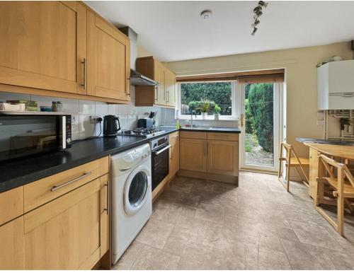这家度假屋配有1间卧室、起居室、带冰箱和电热水壶的设施齐全的厨房以及1间带淋浴设施和免费洗浴用品的浴室。这家度假屋还配备洗衣机以及1间带浴缸的浴室。