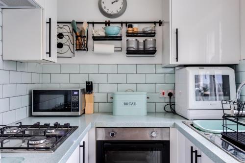 这家2卧室度假屋配有起居室、带有线频道的平板电视、带冰箱和洗碗机的设施齐全的厨房以及1间带淋浴设施的浴室。1间浴室配有浴缸,也配备免费洗浴用品,提供毛巾和床上用品。