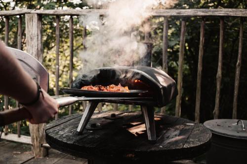 这家度假屋提供起居室和设施齐全的厨房。