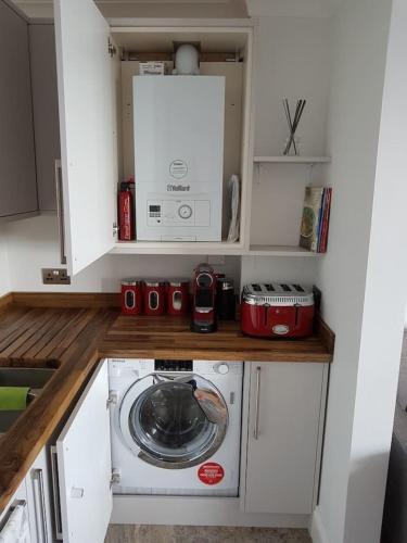 这家公寓配有2间卧室、起居室、带冰箱和咖啡机的设施齐全的厨房以及2间带浴缸或淋浴设施和免费洗浴用品的浴室。这家公寓还提供休息区、洗衣机以及2间带吹风机的浴室。
