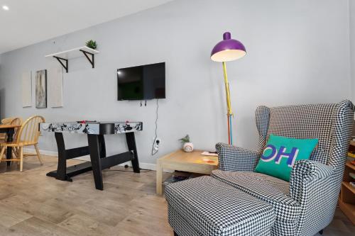 这家度假屋配有4间卧室、起居室、带冰箱和电热水壶的设施齐全的厨房以及2间带淋浴设施和免费洗浴用品的浴室。2间浴室配有浴缸,也提供吹风机,提供毛巾和床上用品。