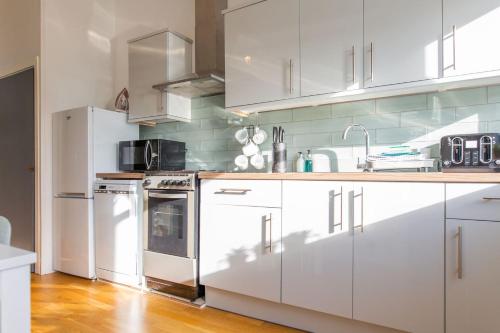 这家公寓提供2间卧室、带冰箱和烤箱的厨房以及1间带淋浴设施、吹风机和洗衣机的浴室。这家公寓也配备1间浴室。