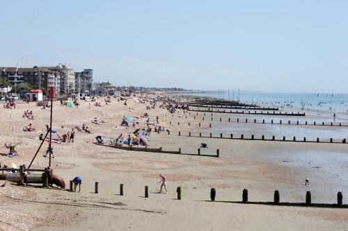 Two bed Apartment with Sea Views in Bognor Regis配备免费WiFi和娱乐场所,距离博格诺里吉斯火车站有不到7分钟步行路程,距离琴切斯特火车站有不到12公里。这家公寓坐落于一栋建造于1945年的建筑内,距离奇切斯特大教堂有12公里,距离古德伍德赛车场有12公里。
