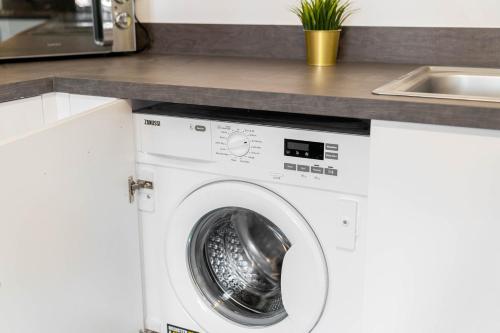 这家公寓配有1间卧室、起居室、带冰箱和电热水壶的设施齐全的厨房以及1间带淋浴设施和免费洗浴用品的浴室。这家公寓还配备休息区、洗衣机以及1间带吹风机的浴室。
