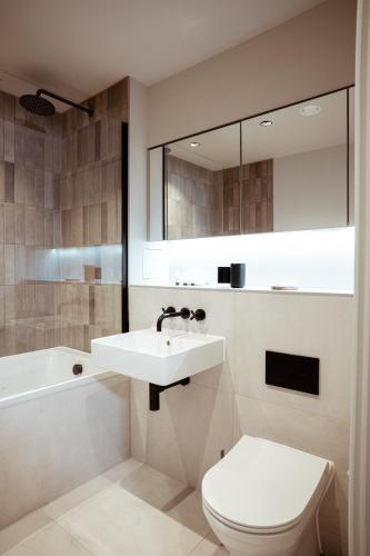 这家公寓配有1间卧室、起居室、带冰箱和咖啡机的设施齐全的厨房以及1间带淋浴设施和免费洗浴用品的浴室。1间浴室配有浴缸,也配备吹风机,提供毛巾和床上用品。
