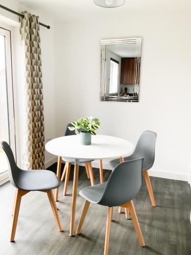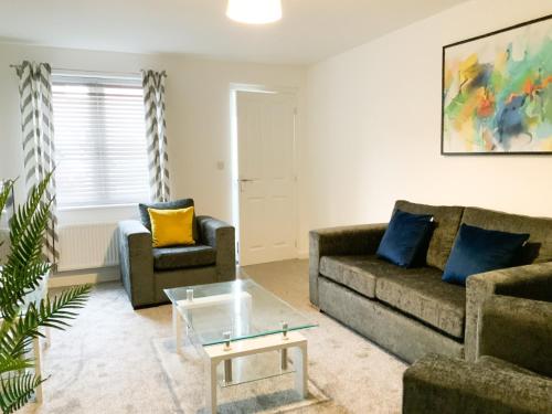 这家度假屋配有3间卧室、1间带吹风机的浴室、起居室以及带冰箱的厨房。这家度假屋也拥有1间浴室。