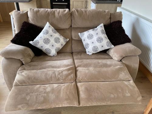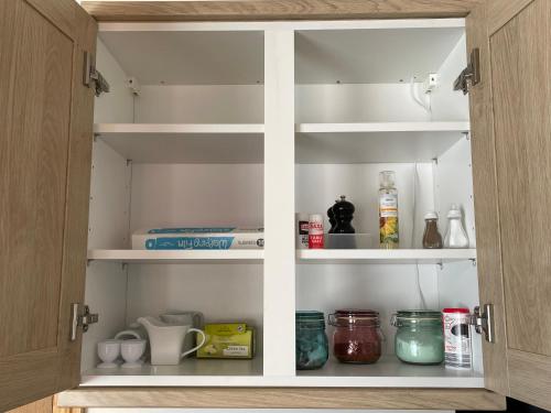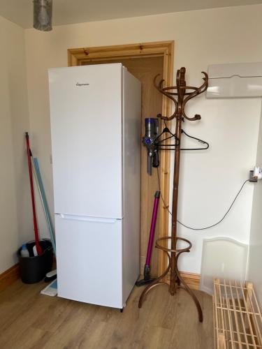 这家度假屋配有1间卧室、起居室、带冰箱和电热水壶的设施齐全的厨房以及1间带淋浴设施和吹风机的浴室。这家度假屋也拥有1间浴室。